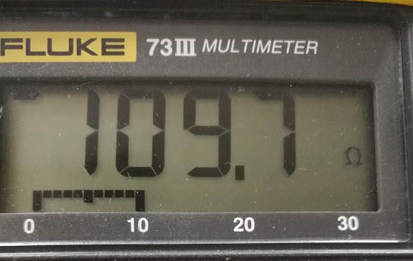 样品电阻温度计读数为 109.7 欧姆,大约为 25°C: